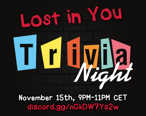 I'll be hosting a Lost in You trivia night on November 15th from 9PM until 11PM CET. Time zone converter: https://dateful.com/convert/central-european-time-cet?t=9pm&d=2025-11-15